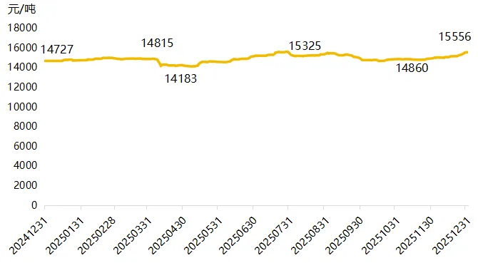 2025年,国内棉花价格呈现“宽幅震荡、内外分化”的特征。年初,受政策支持与成本支撑双重影响,价格运行相对平稳;4月,受美国加征关税冲击,棉价出现大幅下跌,4月30日,3128B级别棉花现货价格回落至14183元/吨;5-7月,伴随中美经贸磋商缓和,棉价震荡回升并触及年内高点,7月31日,3128B级别棉花现货价格攀升至15325元/吨;8—10月,受新棉丰产预期渐强及消费旺季表现平淡的拖累,棉价持续回落,10月31日,3128B级别棉花现货价格回落至14860元/吨;11-12月,在成本支撑与政策托底的共同作用下,棉价企稳反弹,年底收于相对高位,截至12月31日,3128B级别棉花现货价格为15556元/吨。