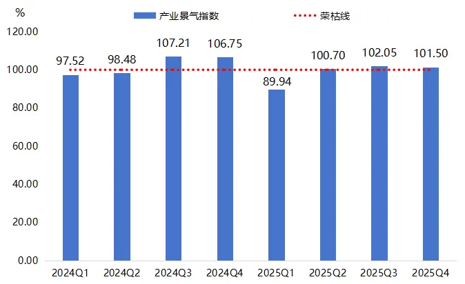 2025年,高阳纺织产业景气指数从一季度的89.94点收缩起步,历经二季度的突破回暖,下半年在景气区间坚挺运行,最终定格在101.50点。总体看,下半年指数表现优于上半年。