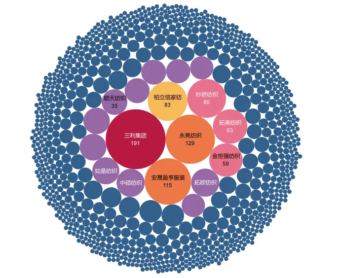 中小微企业创新活力释放,产业链创新协同性增强。中小微企业专利聚焦自身核心业务,创新成果更贴合中小批量生产需求,与龙头企业的大型设备、核心工艺创新形成互补,推动高阳纺织产业链各环节创新协同发展。同时,不同企业间专利类型互补、技术覆盖广泛,反映出产业链上下游协同创新趋势增强,中小微企业正成为推动行业技术升级的重要补充力量。