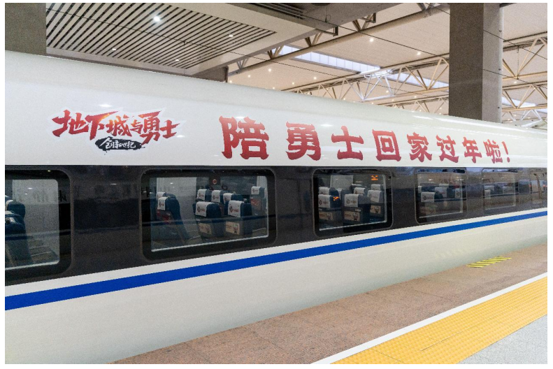 由DNF冠名的游戏主题定制高铁专列,现已启程“护航各位勇士回家过年”。从车身外涂装到车厢内饰、座位枕巾,进行全方位的沉浸式IP包装。将单一的交通载具升级为融合数字文化的“移动文旅空间”,为传统出行赋予全新的文化内涵与情感连接。