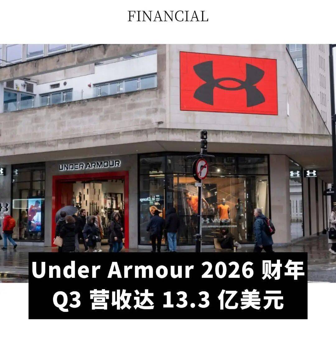 Under Armour 2026 财年第三季度实现营收 13.3 亿美元,同比下降 5%;毛利率下降 3.1 个百分点至 44.4%。分区域来看,北美市场营收同比下滑 10%,国际市场营收上升 3%,持续展现出韧性。该公司总裁兼首席执行官 Kevin Plank 表示:“公司第三季度调整后的经营业绩超出预期。尽管受到部分偶发且不可重复因素的影响,我们仍对品牌振兴取得的阶段性成果表示认可。随着全球业务持续扩展,我们有信心在未来实现更高水平的稳定发展。”包括中国市场在内的亚太地区本季度实现营收 1.9 亿美元。该公司表示将继续通过战略聚焦及创新投入,进一步提升长期增长潜力.(Lee)